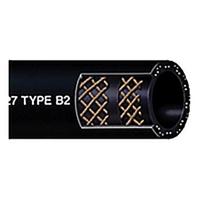 內膠:黑色的以耐高溫三元乙丙橡膠為基膠的合成橡膠Pyrosyn。外膠:黑色的和紅色的以氯磺化聚乙烯為基膠的合成橡膠Hysunite,中等耐油性(RMA的B等級),表面光滑,有針孔。增強層:一層鋼絲編織層。溫度:蒸汽輸送作業:350PSI壓力下,上限溫度325°F(163°C);熱水輸送作業:3000PSI(1/2"內徑為2500PSI)壓