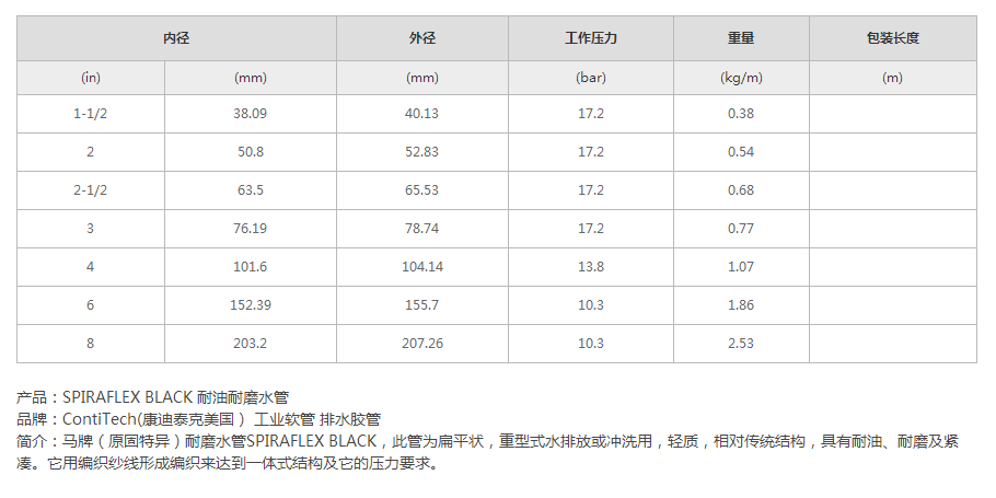用途:此管為扁平狀,重型式水排放或沖洗用,輕質,相對傳統結構,具有耐油、耐磨及緊湊。它用編織紗線形成編織來達到一體式結構及它的壓力要求。抵抗發霉和腐爛,無需干燥。高拉伸強度橡膠化合物具有耐用性,可以用來包裹其它物件,應用主要包括灌溉、沖洗、排水、上煤準備及工具廠、氣體鉆探、噴射及泵排放,儲罐及下水道清洗。