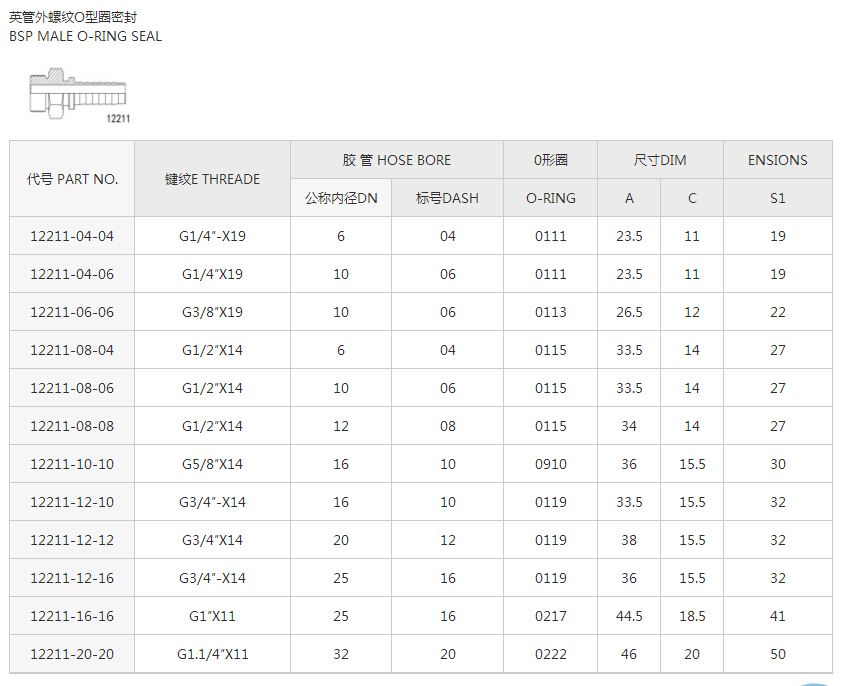 12211英管外螺紋O型圈系列